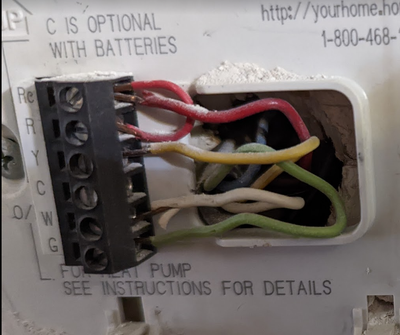 There is a bridge between Rc and R, and the red wire goes in Rc.  Y, W, and G.  All pretty standard from what I'm seeing online.  I do not have an O/B wire.  When I install the Nest (Gen 1), I put all the wires in their corresponding positions.  In the app I say that I have an Rc, Y, W and G wires.  Everything sets up, but it is blowing hot air when it should be cooling.  I did some checking and all the solutions say to mess with settings on the O/B wire, which I don't have.  I thought, maybe I should just say R instead of Rc.  I factory reset and re-did everything but said R instead of Rc.  Now I get an E294 error saying there is no power.  Below is a screenshot of my first configuration in the Google Home app: